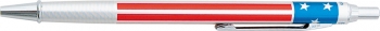 Fisher Space Pen FP3165 Item Description:Fisher Pen American Flag. 5 1/8 overall. Metal body with red, white and blue American flag design. Pocket clip. Press end of pen to open/close. Refillable." 5 1/8" overall. Metal body with red, white and blue American flag design. Pocket clip. Press end of pen to open/close. Refillable. Writes reliably under extreme conditions: over fingerprints, over grease, extreme cold (-50°C), extreme heat (+200°C), over wet paper, in a vacuum, and at any angle, even upside down.