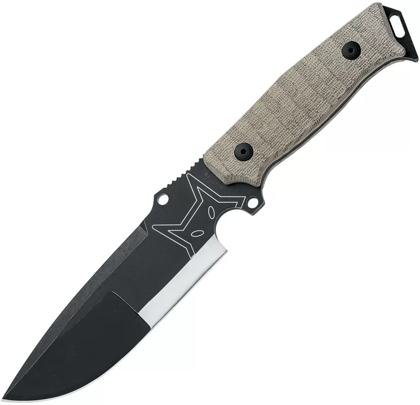 11.25" (28.58cm) overall. 5.5" (13.97cm) black PTFE coated D2 tool steel blade. OD green canvas micarta handle. Full, extended tang. Lanyard hole. Black leather belt sheath. Boxed.