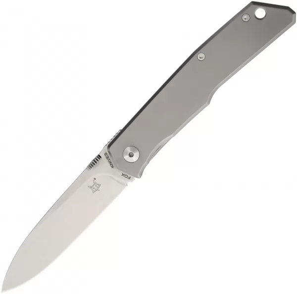 Fox FOX525TI Item Description:Fox Terzuola Titanium Framelock knives FOX525TI on sale now for $246.75. UPC code 788857039502. Made in Italy. Closed: 4.375"; Blade: 3.5" l N690Co Stainless l Standard Edge l Stonewash Finish; Handle: Gray l Titanium; Other Info: Lanyard Hole l Pocket Clip. Thumb disk. Black nylon zippered pouch. Boxed.