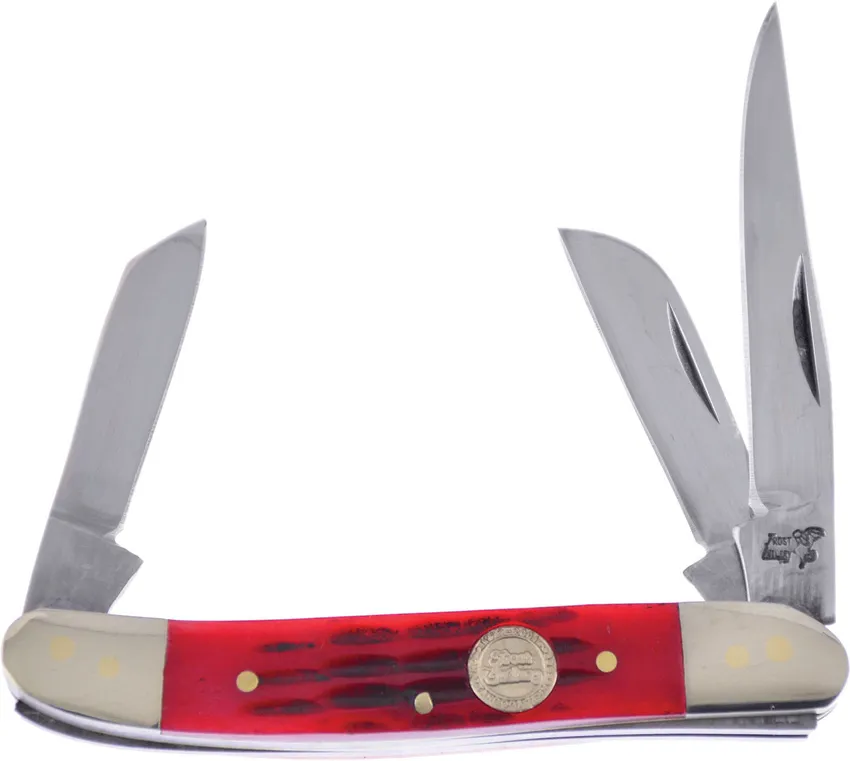 Frost Cutlery Range Rider Red Bone 3 1-4"" knives F14910RJB on sale now for $10.20. UPC code 026615675280. There are 8 in stock.