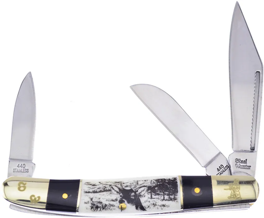 Frost Cutlery Wrangler Deer Etch Cbh SB knives FSW112BHSBD on sale now for $17.98. UPC code 026615407911. There are 8 in stock.