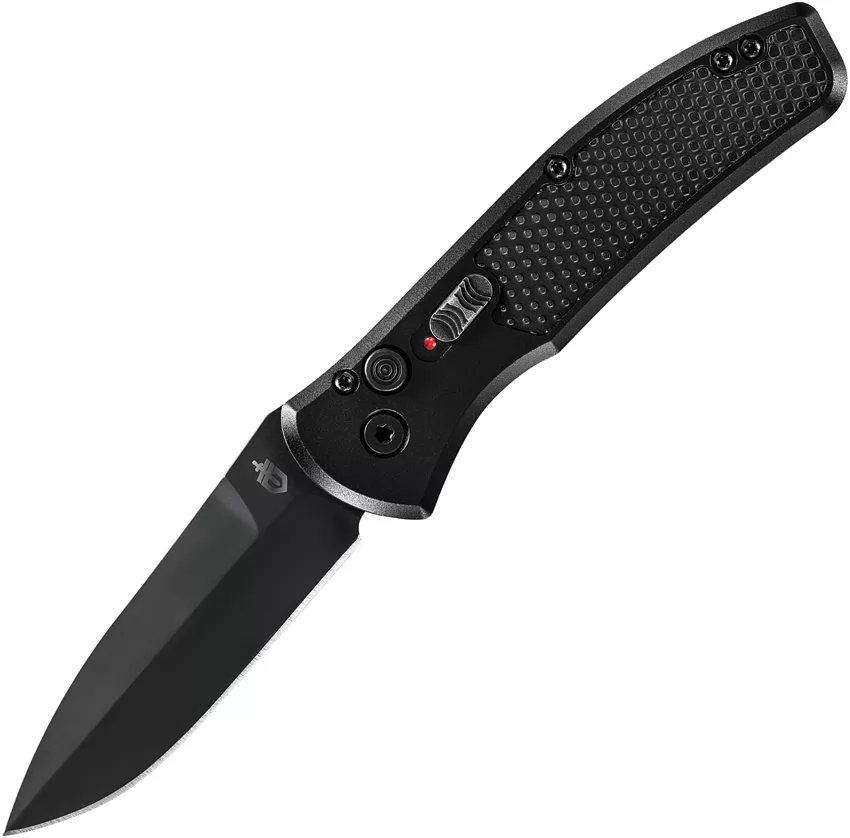 Automatic opening. 4.25" (10.8cm) closed. 3.25" (8.26cm) black oxide coated S30V stainless blade. Pocket clip. Armored Grip handle plates. Boxed.