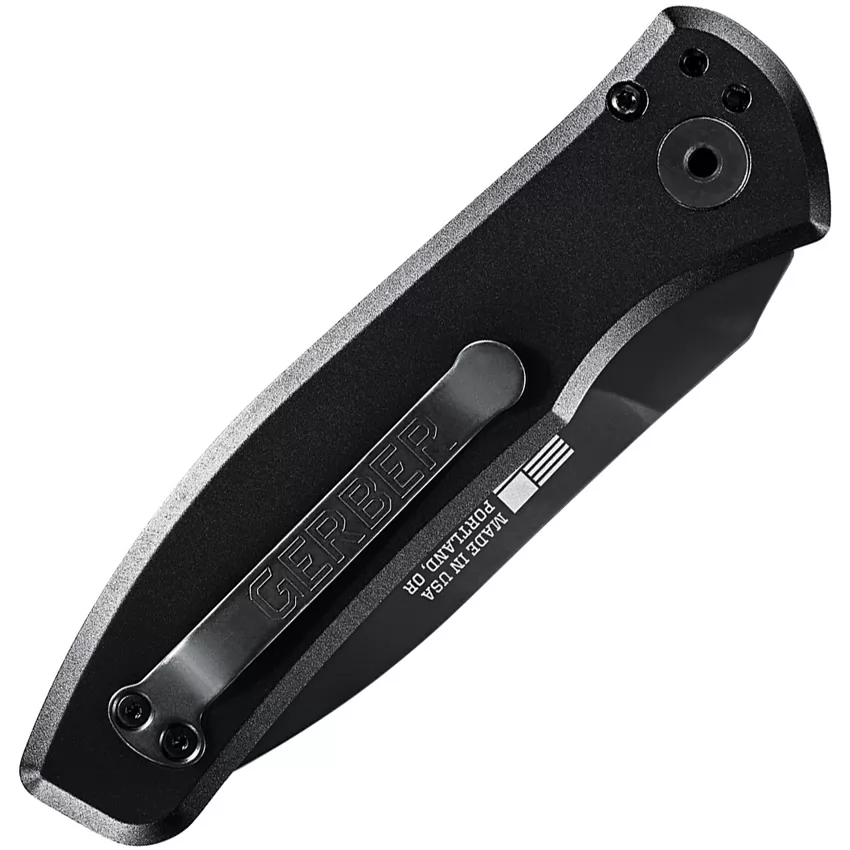 5.13" (13.03cm) closed. 3.25" (8.26cm) black oxide coated partially serrated CPM S30V stainless drop point blade. Black anodized aluminum handle with Armored Grip handle plates. Pocket clip. Safety switch. Boxed.