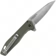 4.13" closed. 3" stonewash finish CPM S30V stainless Wharncliffe blade. Green aluminum handle. Extended tang. Lanyard hole. Pocket clip. Boxed with hanging tab.