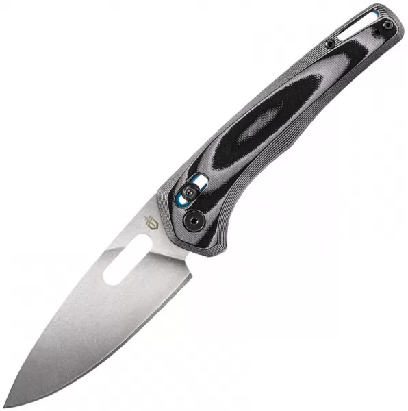 5" (12.7cm) closed. 4" (10.16cm) stonewash finish 7Cr17MoV stainless blade. Black and gray G10 handle. Thumb pull. Lanyard hole. Pocket clip. Boxed with hanging tab.