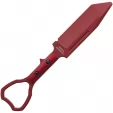 7.75" (19.69cm) overall. 4" (10.16cm) black Teflon coated premium steel tanto blade. One-piece construction. Finger ring. Includes red aluminum trainer that is virtually identical in weight and size to the live edge variant. Black molded plastic MOLLE compatible belt sheath. Boxed.
