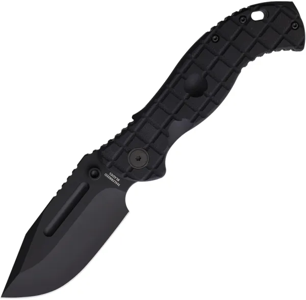 5.5" (13.97cm) closed. 4.13" (10.49cm) black PVD coated CPM-3V carbon steel modified drop point blade. Black frag pattern G10 handle. Extended tang. Lanyard hole. Glass breaker. Thumb stud. Boxed.