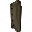 11.75" (29.85cm) overall. 6.75" (17.15cm) OD green Teflon coated premium steel blade. OD green sculpted G10 handle. Full, extended tang. Lanyard hole. Tracker inspired modified drop point blade. OD green Kydex MOLLE compatible belt sheath. Boxed.