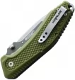 Assisted opening. 4.25" (10.8cm) closed. 3" (7.62cm) satin finish AUS-8 stainless blade. Green textured synthetic handle. Thumb stud. Lanyard hole. Pocket clip. REDI-lock blade replacement system. Push button release. Comes with (2) drop point blades (one standard edge and one partially serrated). Includes T5 Torx bit. Clam packed.