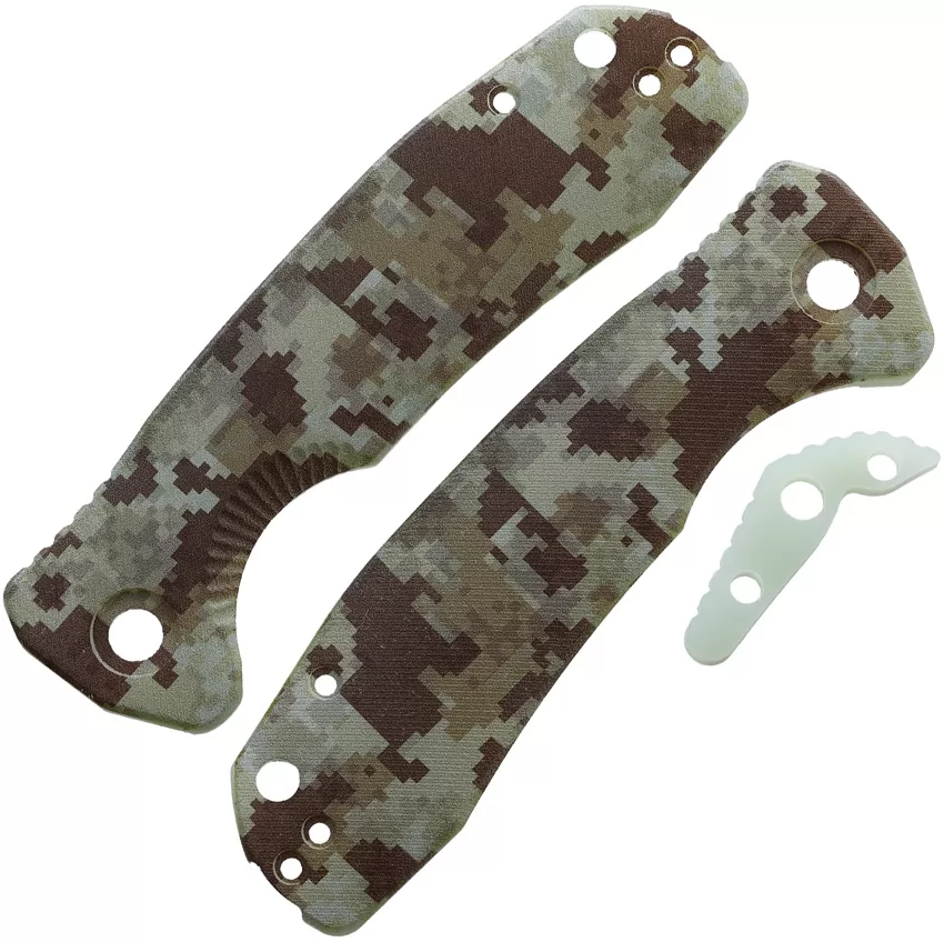 4.13" overall. Fits Honey Badger medium linerlock. Comes with backspacer. G10 construction. Color: Camo. Bulk packed.