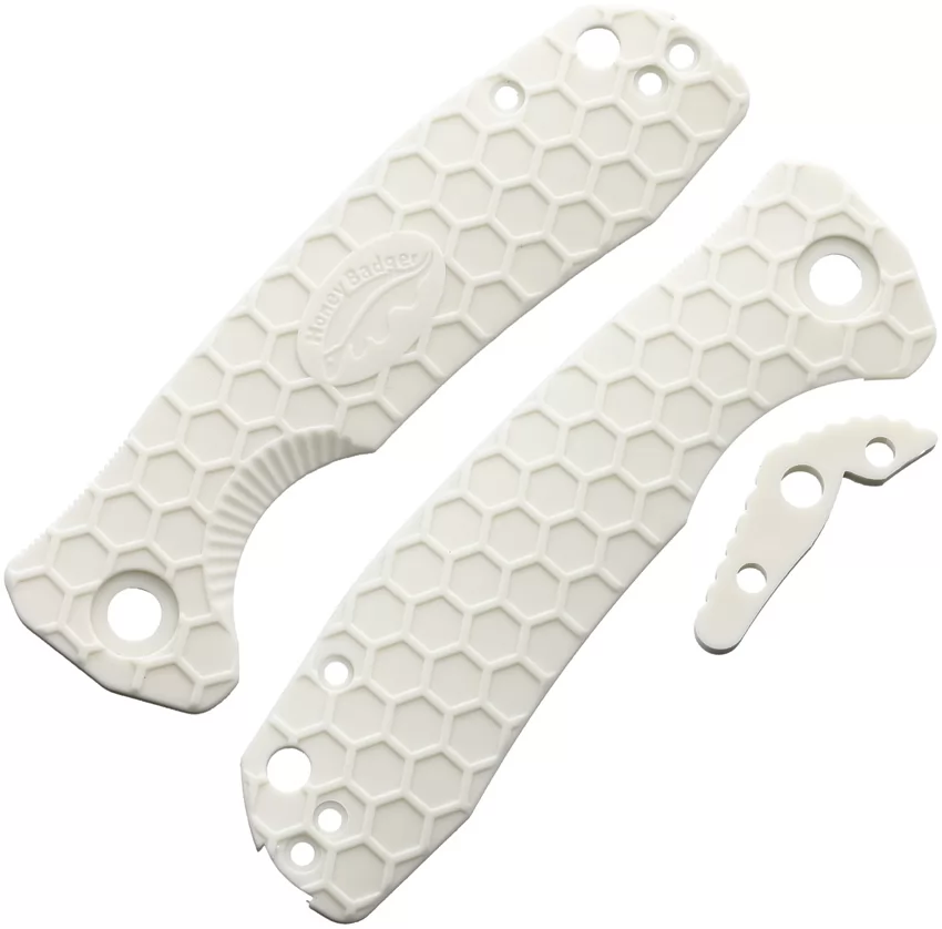4.13" overall. Fits Honey Badger medium linerlock. Comes with backspacer. FRN construction. Color: White. Bulk packed.