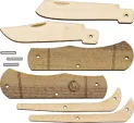 Jameson JJ's Trapper Knife Kit. These kits were first put together by a woodworking hobbyist as a Christmas gift for his son J.J. The pieces are hand cut and hand packaged in the USA. Each kit features six pieces cut from American hardwood; three metal pins; instructions; and metal storage tin. Blade(s) are unsharpened. Finished knife size is 3 1/2 closed. Contains small parts, keep away from small children. This kit makes a 2 blade trapper. Great gift idea!" These kits were first put together by a woodworking hobbyist as a Christmas gift for his son J.J. The pieces are hand cut and hand packaged in the USA. Each kit features six pieces cut from American hardwood; three metal pins; instructions; and metal storage tin. Blade(s) are unsharpened. Finished knife size is 3 1/2" closed. Contains small parts, keep away from small children. This kit makes a 2 blade trapper. Great gift idea!