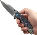 4.25" (10.8cm) closed. 3.25" (8.26cm) satin finish CPM-20CV stainless blade. Lightning strike anodized titanium handle. Extended tang. Thumb stud. Pocket clip. Black nylon pouch. Boxed.