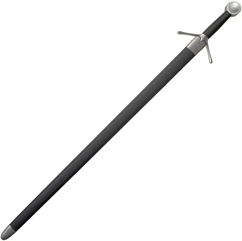 37.25" (94.62cm) overall. 30.75" (78.11cm) satin finish 5160 carbon steel blade. Black leather wrapped handle. Traditional hilt construction. Black wood scabbard. Boxed.