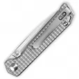 3.75" (9.53cm) closed. 2.75" (6.99cm) satin finish Bohler M390 stainless blade. Sculpted titanium handle. Thumb stud. Lanyard hole. Pocket clip. Black nylon pouch. Boxed.