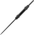 6.75" (17.15cm) overall. 3.13" (7.95cm) black finish D2 tool steel blade. Black denim micarta handle. Full, extended tang. Finger ring. Reverse tanto blade. Includes extra set of G10 handle scales. Black Kydex neck sheath. Boxed.