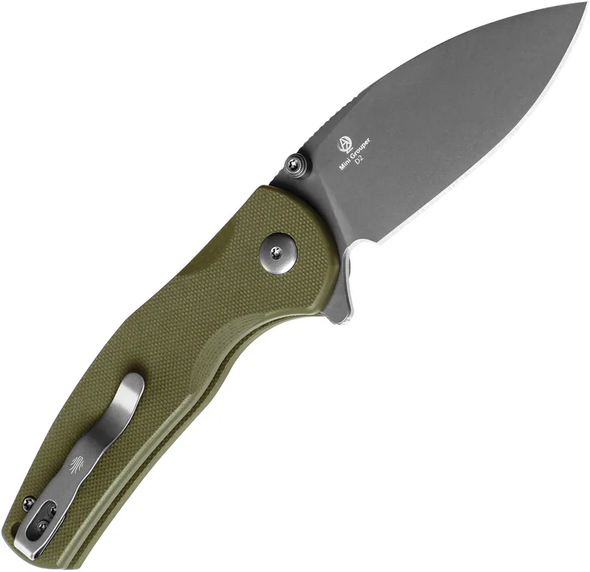 The Kizer Cutlery Mini Grouper Button Lock OD (BRK-KIV3669A3) offers reliable performance in a compact, everyday carry design. Featuring a durable blade, this knife utilizes a smooth button lock mechanism for secure and effortless operation. Its OD Green handle provides a comfortable and confident grip, making it a valuable tool for a variety of tasks. The Mini Grouper is crafted with precision and quality materials, promising long-lasting utility and a refined aesthetic for the discerning user. 4.38" (11.13cm) closed. 3.13" (7.95cm) stonewash finish D2 tool steel drop point blade. OD green G10 handle. Extended tang. Thumb stud. Lanyard hole. Pocket clip. Boxed.