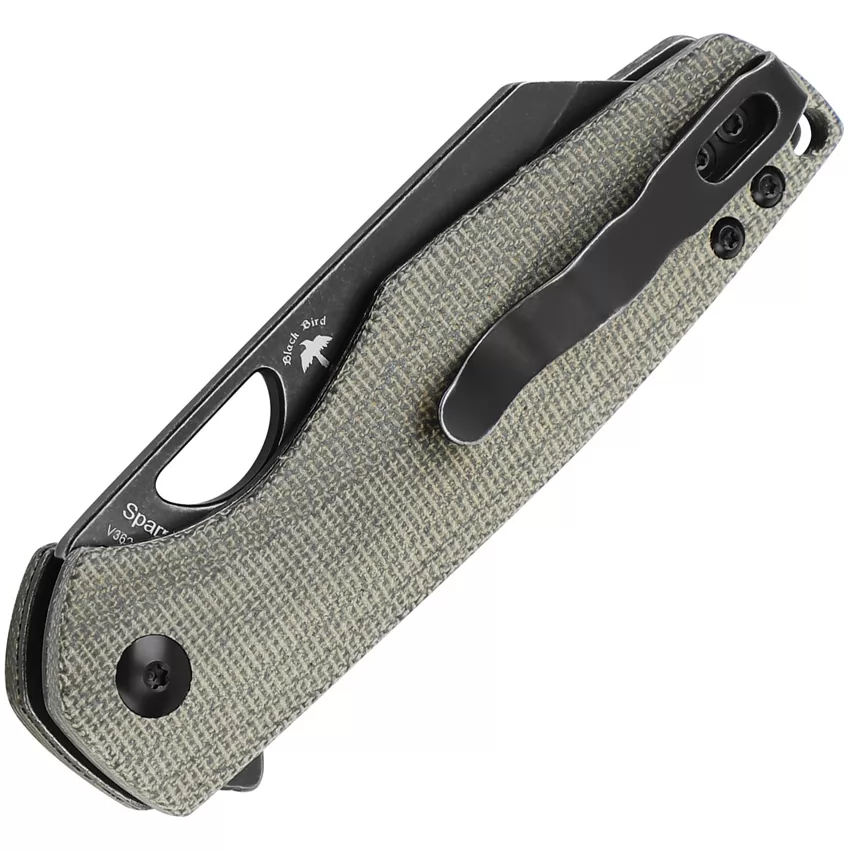 4" (10.16cm) closed. 3" (7.62cm) black stonewash finish 154CM stainless blade. Green canvas micarta handle. Extended tang. Lanyard hole. Pocket clip. Thumb pull. Blade etching. Boxed.