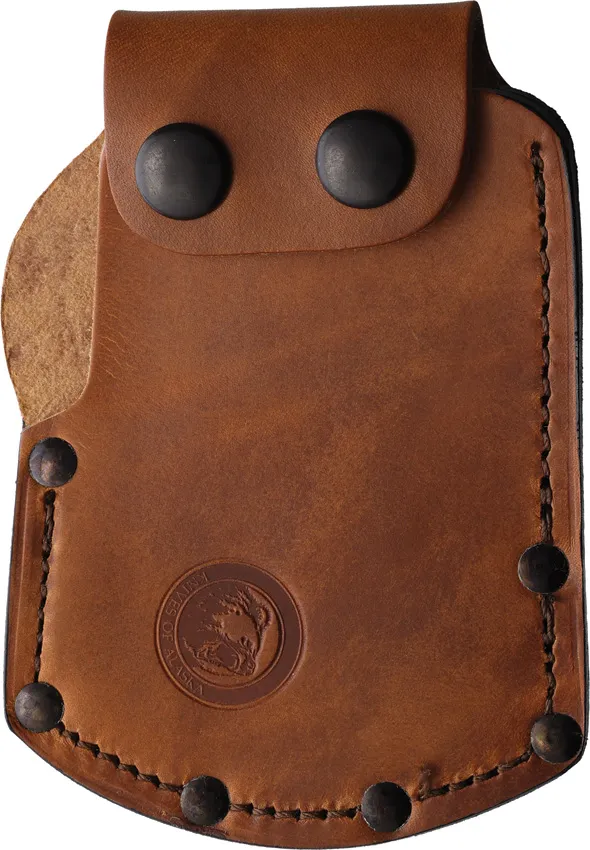 11.25" overall. 4.25" satin finish stainless axe head with 2.25" cutting edge. Wood handle. Brown leather belt sheath. Boxed.