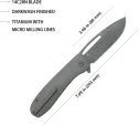 4.5" (11.43cm) closed. 3.5" (8.89cm) black stonewash finish 14C28N Sandvik stainless drop point blade. Black stonewash finish titanium handle. Extended tang. Thumb pull. Pocket clip. Boxed.