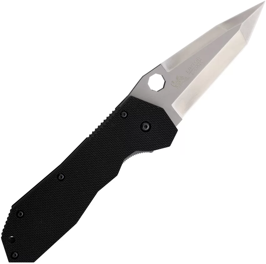 6" (15.24cm) closed. 4.25" (10.8cm) matte finish stainless tanto blade. Black textured G10 handle. Thumb pull. Lanyard hole. Boxed.