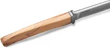 7" (17.78cm) overall. 3.13" (7.95cm) satin finish Bohler M390 stainless blade. Olive wood handle. Titanium guard. Brown leather belt sheath. Boxed.
