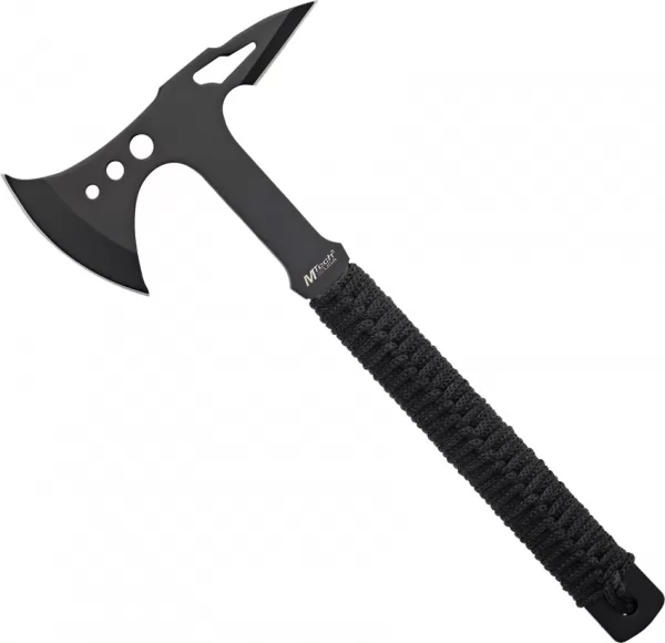$32.95$18.64MTech MTAXE8B Item Description:Introducing the Axe Black Handle MTAXE8B from MTech Knives, the ultimate tool for outdoor enthusiasts and collectors. With its 3.75-inch, black-coated stainless steel axe head and black aluminum handle, this axe is both durable and stylish. Its ergonomic handle provides a secure grip, while the axe head's sharp edge makes it easy to tackle any task. Whether you're clearing brush, chopping firewood, or just admiring its sleek design, the Axe Black Handle MTAXE8B is a must-have for any outdoor adventure. 15.13" overall. 6.88" black coated 440 stainless axe head with 3.63" cutting edge. Black cord wrapped handle. 2.63" sharpened spike. One piece construction with drilled hole and slot cutout design. Black nylon belt sheath.
