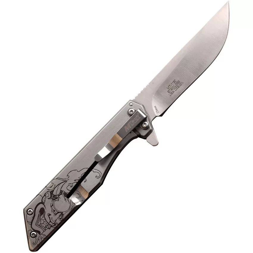 $32.95$18.31MTech MT1160LD Item Description:The MTech Knives BRK-MT1160LD Framelock Devil delivers rugged reliability in a striking design. This knife features a durable stainless steel blade with a black finish, paired with a textured aluminum handle that offers a secure grip. The framelock mechanism ensures safe and dependable blade deployment, while the integrated pocket clip allows for convenient everyday carry. This knife serves well for tasks ranging from opening packages to tackling more demanding outdoor activities.
