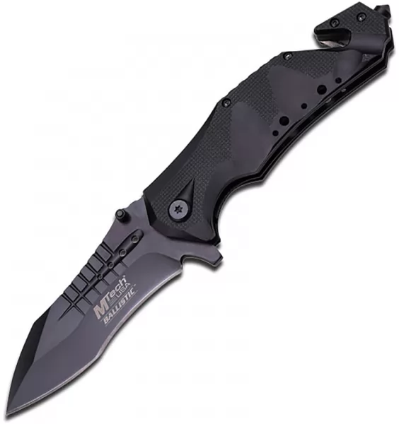 $18.95$10.78MTech MTA845BK Item Description:The MTech Knives Rescue Linerlock A/O Black (MTA845BK) is a dependable tool for emergency situations and everyday carry. This knife features a durable black stainless steel blade with a partially serrated edge, ready for quick cutting tasks. Its assisted opening mechanism provides rapid deployment with one hand, while the secure linerlock keeps the blade firmly in place during use. The handle, also black, offers a comfortable and confident grip. Plus, a built-in glass breaker and seatbelt cutter add valuable utility in critical moments.