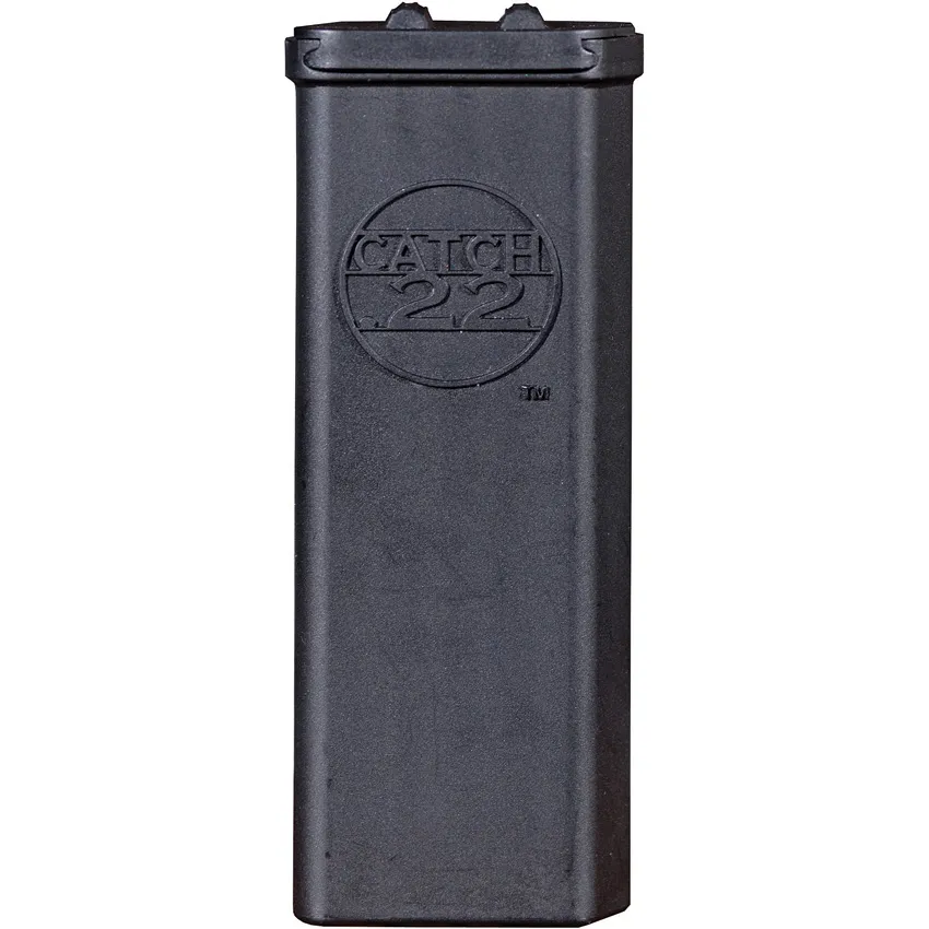 Marble Arms Catch .22 .22LR Cartridge Dispenser.The safe way to carry ammunition.Black plastic case with belt clip.Holds 50 .22LR cartridges.Dispenses 1-5 rounds at a time.Hang packged. The safe way to carry ammunition. Black plactic case with belt clip. Holds 50 .22LR cartridges. Dispenses 1-5 rounds at a time. Designed by Blackie Collins. Hang packaged.
