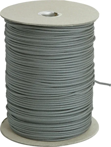 Marbles RG106S Item Description:Parachute Cord Foliage Green. Nylon construction. 1,000 ft. length. Ideal for camping, boating, crabbing, indoor and outdoor clotheslines, halyard lines, garden lines, venetian blinds, awning lines and many applications requiring strength and durability. 1,000 ft. length. Nylon. Ideal for camping, boating, crabbing, indoor and outdoor clotheslines, halyard lines, garden lines, venetian blinds, awning lines and many other applications requiring strength and durability. Rated for 550 lbs. 7 strand. Made in U.S.A. Color may vary due to the dye lots. 1,000 ft. spools may have splices.