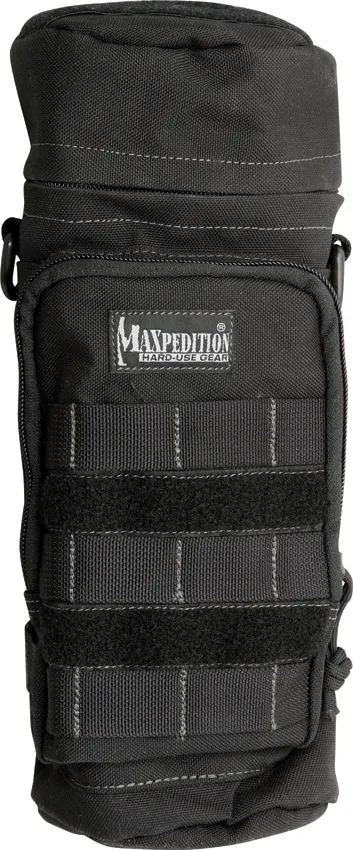 $59.99$47.29Maxpedition MX323B Item Description:Maxpedition Bottle Holder This 12 x 5" bottle holder will hold a tall insulated container or a bottle of wine (750ml). Main compartment: 12" high x 5" diameter, padded, with drainage grommet. Frontal: 7" x 4" x 1.5" with elastic retention. PALS attachment webbing: Front and sides. Attachment-1: D-rings for optional shoulder strap. Attachment-2: 5" TacTie (sold separately). Attachment-3: Keyper quick release hook on back. Bulk packed. Color: Black." This 12" x 5" bottle holder will hold a tall insulated container or a bottle of wine (750ml). Main compartment: 12" high x 5" diameter, padded, with drainage grommet. Frontal: 7" x 4" x 1.5" with elastic retention. PALS attachment webbing: Front and sides. Attachment-1: D-rings for optional shoulder strap. Attachment-2: 5" TacTie (sold separately). Attachment-3: Keyper quick release hook on back. lon thread (stronger than ordinary industry standard nylon thread). #AS-100 high grade closed-cell foam padding material for superior shock protection. High tensile strength nylon webbing. #10 high strength zippers and zipper tracks. UTX-Duraflex nylon buckles for low sound closures.