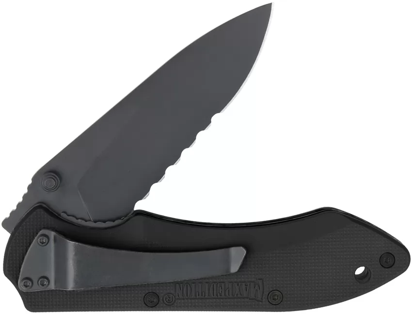 The Maxpedition Ferox Linerlock (MXFXSB) delivers rugged dependability in a folding knife. Built with a robust D2 tool steel blade and a textured G10 handle, the Ferox provides secure grip and lasting sharpness. Its smooth linerlock mechanism allows for easy one-handed operation, while a deep-carry pocket clip keeps it readily accessible. Whether for everyday tasks or demanding outdoor adventures, the Ferox is a capable and reliable cutting tool. 4 1/2" closed. Partially serrated 3 1/4" black finish 5Cr13 stainless drop point blade with dual thumb studs and extended tang. Textured fiber reinforced black nylon handle. Lanyard hole. Black finish stainless pocket clip.