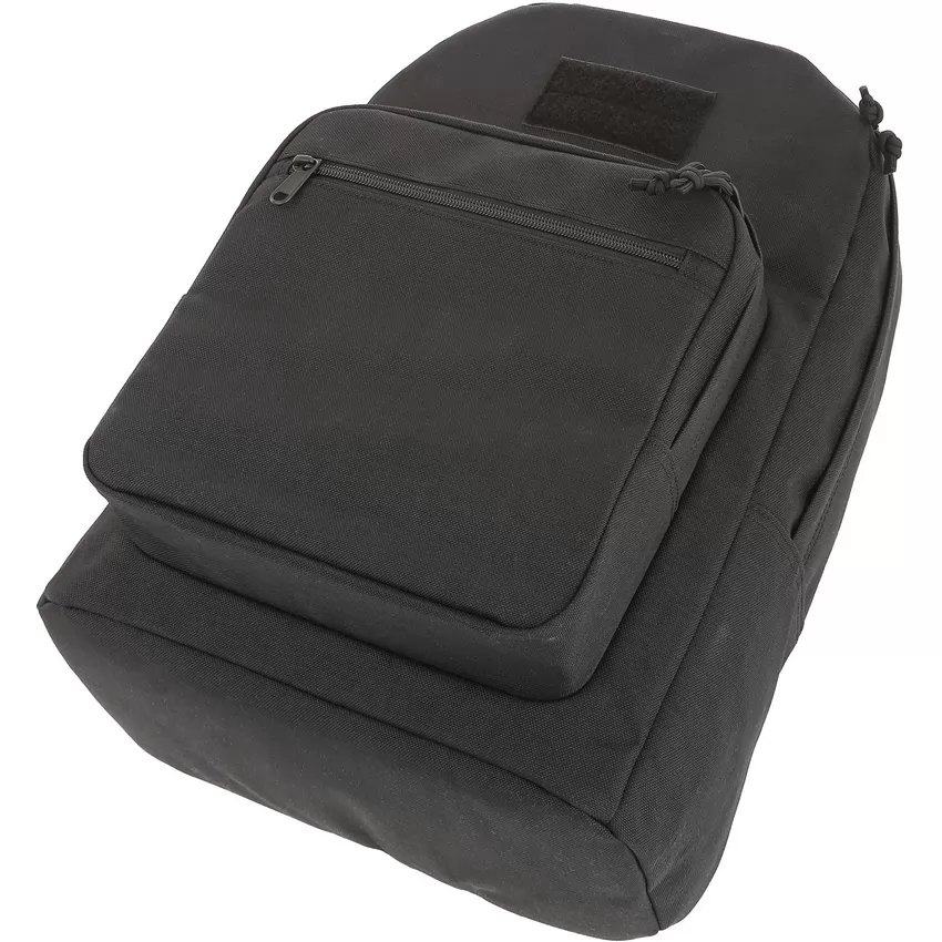 Dimensions: 12.5" x 9" x 18". Weight: 1.7lb. 22L capacity. Spacious main compartment with padded bottom and rear sleeve that fits 15" laptop. Front compartment with organizer pockets and loop field. 2" x 3.75" exterior loop field. Separate CCW compartment with security lockout strip. Dual side accessible for an ambidextrous draw. Padded shoulder straps with field replaceable side release buckles. Skin friendly 1" seat belt webbings. High visibility grayscale interior. Water and abrasion resistant. Triple polyurethane coated. YKK zippers. Teflon coated. 1000-Denier ballistic nylon construction. Color: Black. Bulk packed.