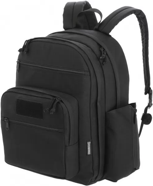 Dimensions: 10" x 18.5" x 18". Weight: 2.5lb. 32L capacity. Main compartment with padded bottom and rear sleeve that fits 15" laptop. Front compartment with admin organizer and mesh storage pocket. 2" x 3.75" exterior loop field. Separate CCW compartment with security lockout strip. Dual side accessible for an ambidextrous draw. Dual expandable bottle pockets with elastic cord retention. Padded shoulder straps with field replaceable side release buckles. Reinforced top carry handle. Skin friendly 1" seat belt webbings. High visibility grayscale interior. Water and abrasion resistant. Triple polyurethane coated. YKK zippers. Teflon coated. 1000-Denier ballistic nylon construction. Color: Black. Bulk packed.