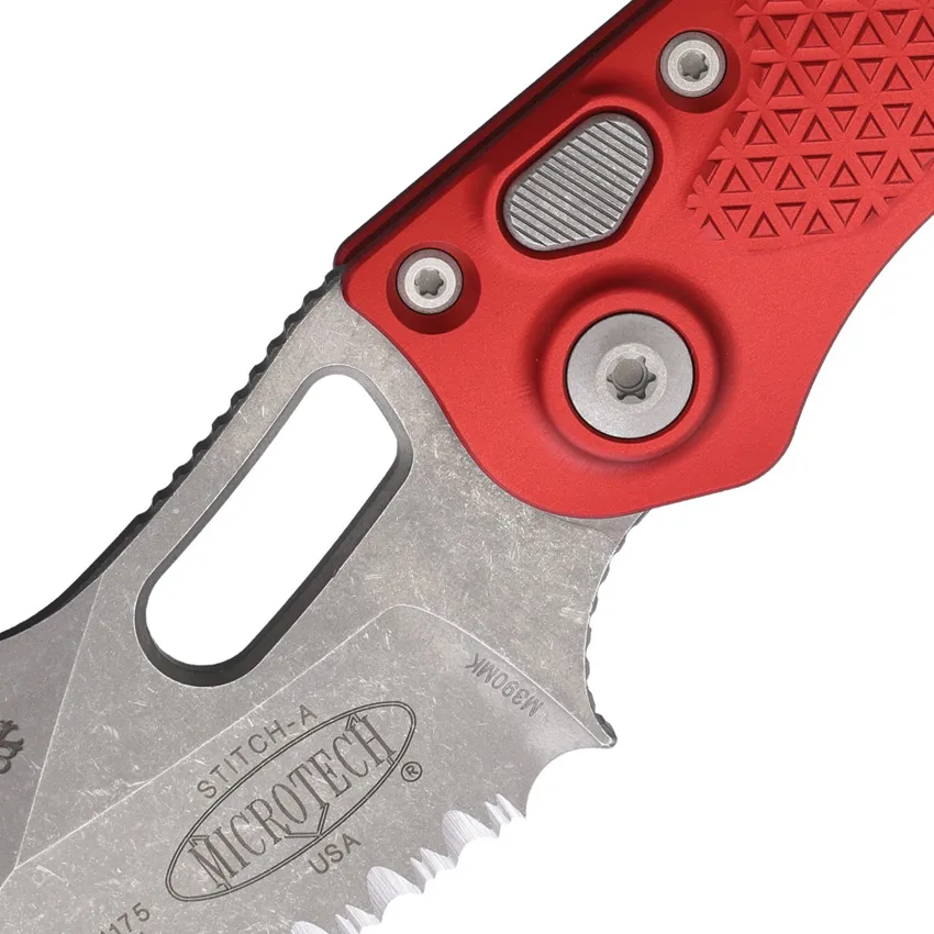 Microtech Auto Stitch S-E Button Lock AP MCT16912APRD on sale now for $472.00. UPC code 841768194880. There are 7 in stock. Made in USA.