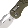 5" (12.7cm) closed. 3.75" (9.53cm) stonewash finish Bohler M390MK stainless blade. OD green frag pattern G10 handle. Thumb pull. Lanyard hole. Pocket clip. Boxed.