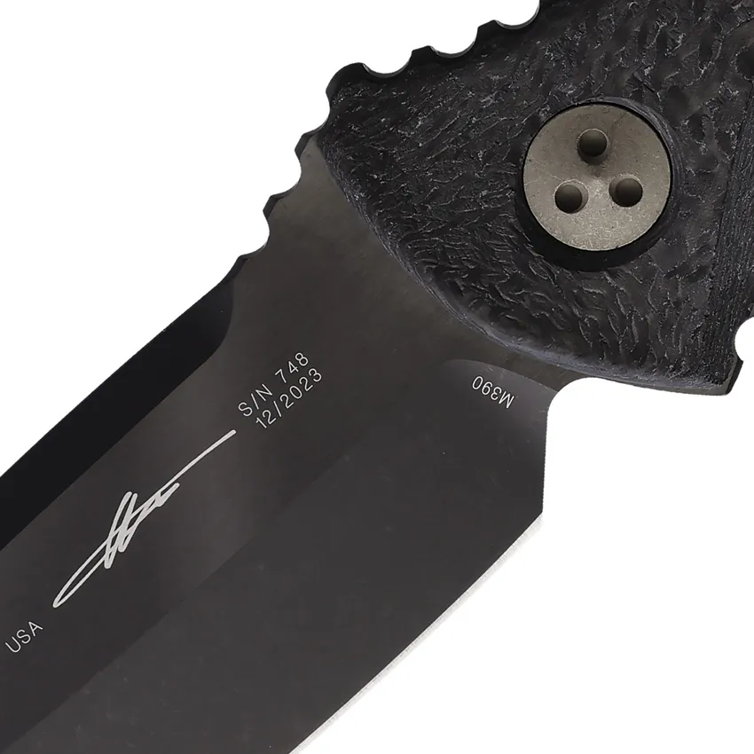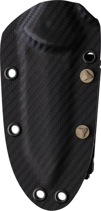 8.17" (20.75cm) overall. 3.75" (9.53cm) black DLC coated premium steel tanto blade. Carbon fiber handle. Full, extended tang. Lanyard hole. Black Kydex belt sheath. Boxed.