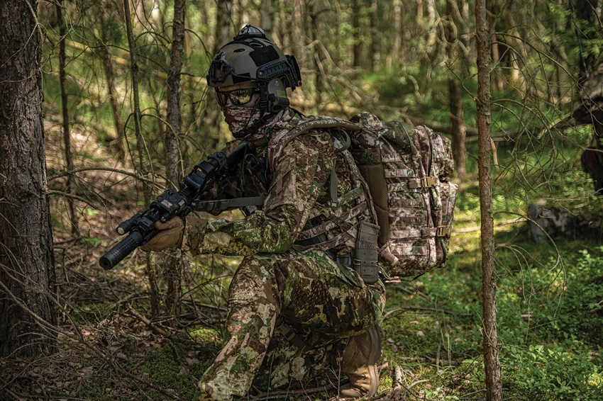 Dimensions: 20" x 11.5" x 11". 36 liter capacity. Carry handle. Two large pockets with several zipper and net pockets. Large front pocket with additional zipper pocket. Compression side straps. Integrated hook and loop closure for hydropack (not included). CIV-TEC WASP I Z2 camo. 100% Polyester, Polyvinylchloride coated construction. Bulk packed.