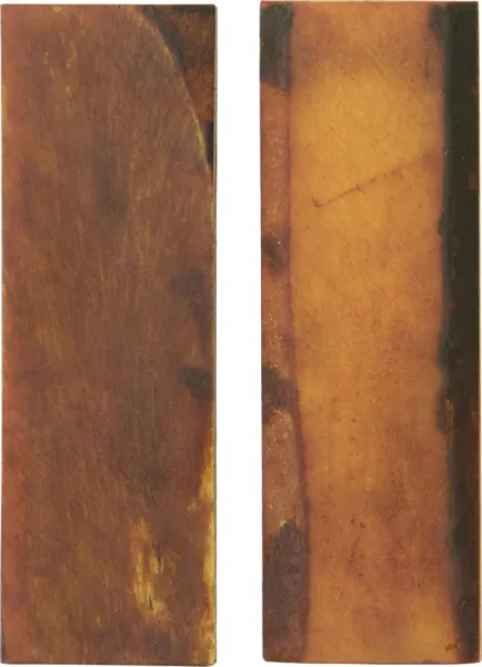 Misc Knife Scales. Amber Bone. 3 long x 1" wide x 1/8". Use as handle material for custom or factory knives. Sold in sets of two." Measures approximately 3" long x 1" wide x 1/8". Use as handle material for custom or factory knives. Sold in sets of two. Bulk packed.
