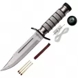 The Miscellaneous Knives BRK-M4510 Survival Fixed Blade is a rugged tool designed for the outdoors. This knife features a durable, full-tang construction with a high-carbon steel blade ready for tough tasks. The ergonomic handle ensures a secure and comfortable grip, even in wet conditions. It includes a sturdy sheath for safe carry and quick access, making it an essential companion for camping, hiking, and survival situations. Get yours today. 9.5"" (24.13cm) overall. 5.5"" (13.97cm) satin finish sawback stainless clip point blade. Checkered stainless handle. Stainless guard. Handle has rubber spacers. Hollow handle holds survival kit containing hook; needle; line; matches; and striking pad. Black nylon belt sheath. Boxed.