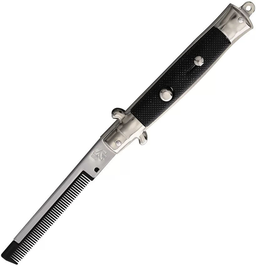 $2.50$1.69Miscellaneous OC101S Item Description:The BRK-OC101S Switchblade Comb from Miscellaneous Knives offers a unique blend of practicality and classic design. This comb features a sturdy, spring-assisted deployment mechanism that quickly transforms it from a sleek pocket accessory to a functional grooming tool. Built with durable materials and a reliable locking mechanism, the BRK-OC101S provides a secure and confident styling solution for those on the go. Its compact size makes it ideal for everyday carry, ensuring you're always prepared to look your best. The BRK-OC101S is more than just a comb; it's a statement.