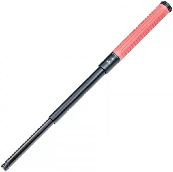 Weight: 12.35oz. Quicker Airweight On-Duty Mechanical Baton. Nexlock quick locking system and Anti-mis-touch unlocking design. Anti-slip red TPE rubber handle. Retracted length: 8.82"; Expanded: 21". Material: 42CrMo steel and 7075 Aluminum. Diameter: 1.1". Boxed.