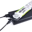 Dimensions: 18" x 1.5" x .39". Green blue, and orange LEDs. 33h runtime. USB-C rechargeable. Requires (1) Lithium battery (included). ABS and polymer construction. Boxed with hanging tab.