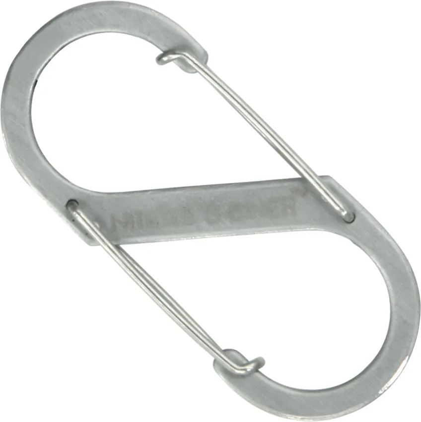Nite Ize N00744 Item Description:Nite Ize S-Biner #3 Stainless. 2 5/8 x 1 1/8". Load limit 25lbs. Stainless steel construction. Smooth wire gate operation. Conveniently attach, carry and hang any item you want conveniently accessible. Not for climbing." Stainless Finish. Single Pack. 2 5/8" x 7/8". Load limit 25lbs. Stainless steel construction. Smooth wire gate operation. Conveniently attach, carry and hang any item you want conveniently accessible. Not for climbing.