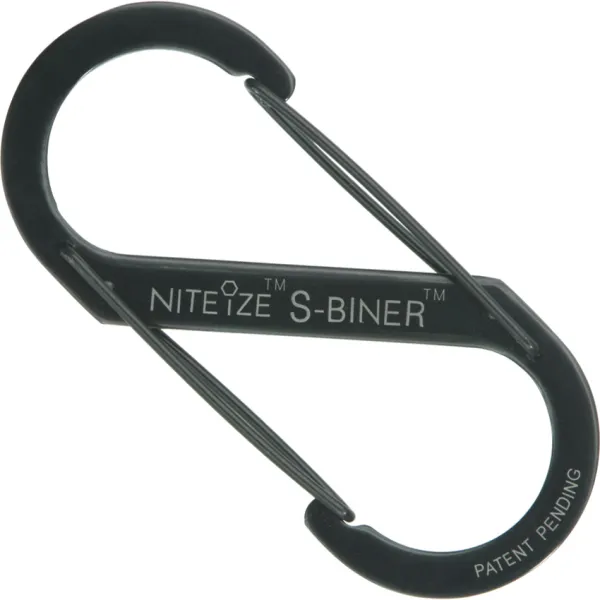 Nite Ize S-Biner #5 Black. 4 3/8 x 1 15/16". Load limit 100lbs. Stainless steel construction. Smooth wire gate operation. Conveniently attach, carry and hang any item you want conveniently accessible. Not for climbing. Black Titanium Finish." Titanium Finish. Single Pack. 4 3/8" x 1 15/16". Load limit 100lbs. Stainless steel construction. Smooth wire gate operation. Hold, secure and connect everything from house keys and cell phones to technical camping gear. Not for climbing.