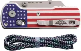 3.25" (8.26cm) closed. 2.25" (5.72cm) SK5 carbon steel blade. American flag pattern synthetic handle. Thumb stud. Pocket clip. Boxed.