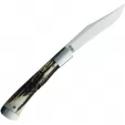 4.13" (10.49cm) closed. Satin finish VG-10 stainless clip blade. Stag handle. Nickel silver bolster(s). Inlay shield. Boxed.