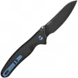 4.5" (11.43cm) closed. 3.5" (8.89cm) black finish Bohler N690 stainless blade. Black G10 handle. Thumb stud. Extended tang. Pocket clip. Modified sheepsfoot blade. Boxed.