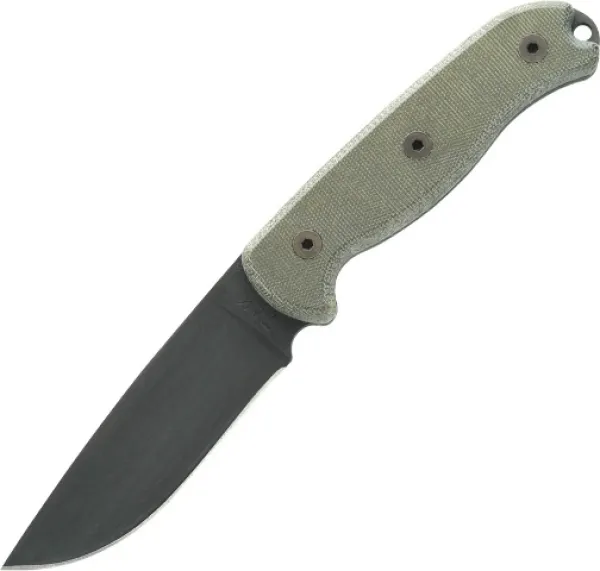 Prepare for any cutting task with Ontario Knife Company's TAK 1 W/NYLON SHEATH, model 8671. Crafted from durable 1095 carbon steel, this versatile fixed blade knife features a 4-inch drop point blade with a sharp, piercing tip. Its comfortable handle, made of robust thermoplastic, provides a secure grip even in demanding conditions. The included nylon sheath offers secure storage and easy accessibility, making the TAK 1 an indispensable tool for outdoor enthusiasts, hunters, and general-purpose users seeking a reliable and capable cutting instrument.